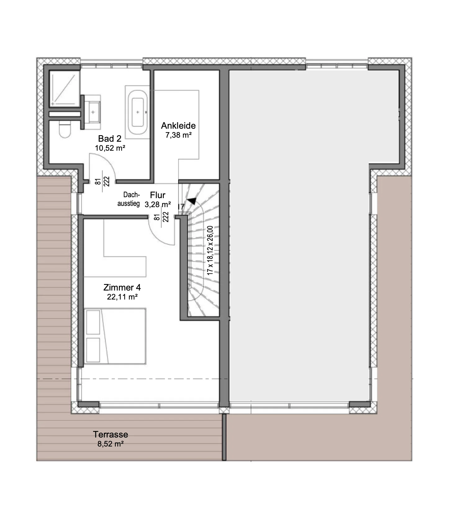 Innen erwartet Sie eine hochwertige Ausstattung: hohe Decken, großzügige Fenster mit Dreifachverglasung, ein stimmungsvolles Lichtkonzept sowie Bäder mit bodenebener Dusche. Fußbodenheizung, Smart-Home-Technologie, durchdachte Elektroausstattung, elektrische Rollläden und einbruchhemmende Türen bieten modernen Komfort, Sicherheit und Energieeffizienz – ergänzt durch eine nachhaltige Bauweise mit ökologischem Zertifikat.